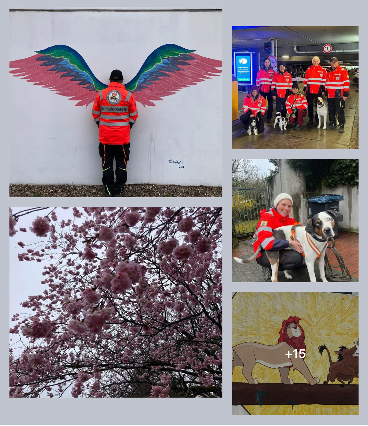 Mantrailing-Training Ende März bei Regen, unter den blühenden Kirschbäumen